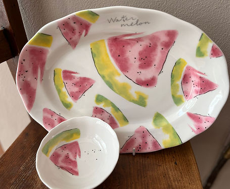 Saladeschaal rondom beschilderd hoogte 10cm, doorsnede 25cm (2 keer een halve dag) 45,-